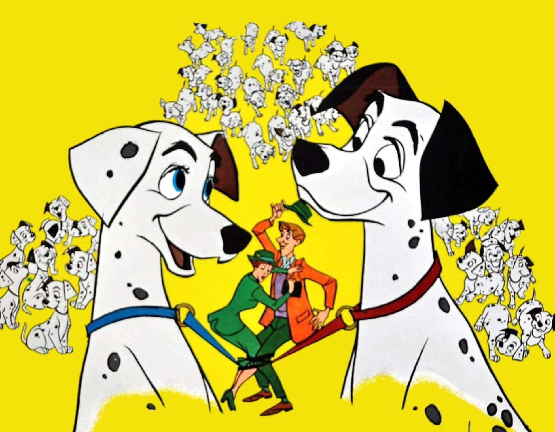 Pongo (Rod Taylor) tricks his human owner Roger (Ben Wright) into meeting and falling in love with Anita (Lisa Davis), who owns Perdita (Lisa Daniels & Cate Bauer). After they have puppies, Cruella de Vil (Betty Lou Gerson) has them stolen to kill and make into coats.